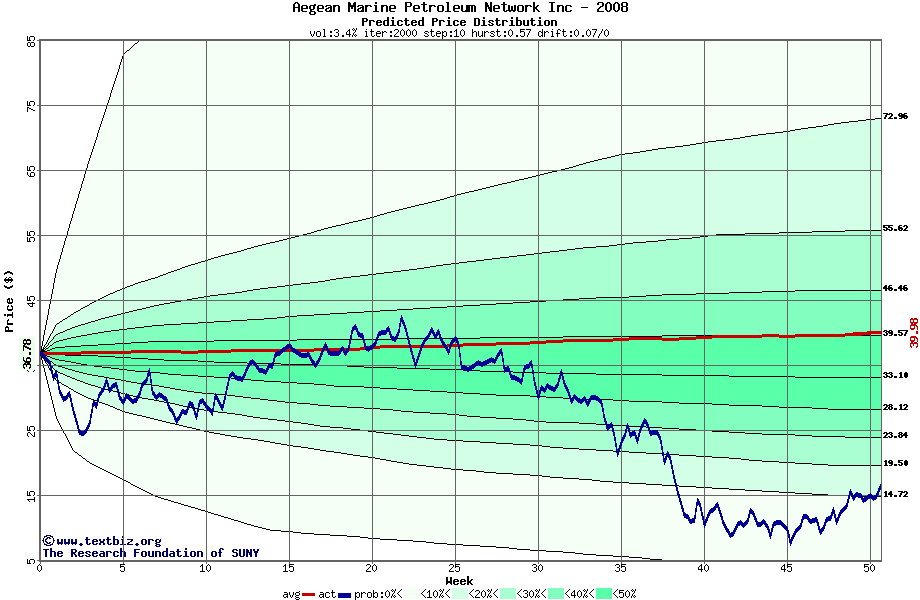 The following graph plots the year-to-date performance of the stock for 2008 compared to the probability calculated by a random walk model.