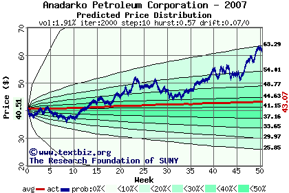 The following graph plots the year-to-date performance of the stock for 2007 compared to the probability calculated by a random walk model.