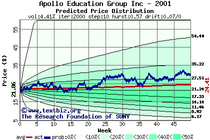The following graph plots the year-to-date performance of the stock for 2001 compared to the probability calculated by a random walk model.