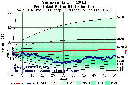 The following graph plots the year-to-date performance of the stock for 2013 compared to the probability calculated by a random walk model.