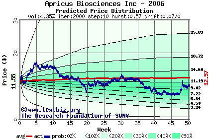 The following graph plots the year-to-date performance of the stock for 2006 compared to the probability calculated by a random walk model.