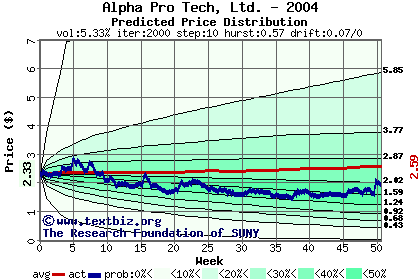 The following graph plots the year-to-date performance of the stock for 2004 compared to the probability calculated by a random walk model.
