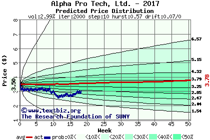 The following graph plots the year-to-date performance of the stock for 2017 compared to the probability calculated by a random walk model.