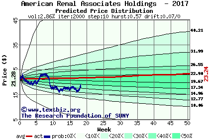 The high to date and low to date prices of the stock plotted against a random walk model for 2017 (what's this?).