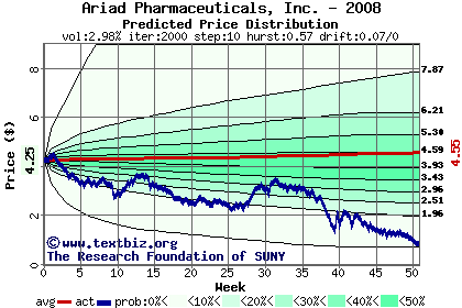 The following graph plots the year-to-date performance of the stock for 2008 compared to the probability calculated by a random walk model.