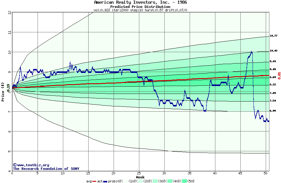 The following graph plots the year-to-date performance of the stock for 1986 compared to the probability calculated by a random walk model.
