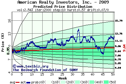 The following graph plots the year-to-date performance of the stock for 2009 compared to the probability calculated by a random walk model.