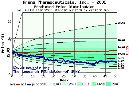 The following graph plots the year-to-date performance of the stock for 2002 compared to the probability calculated by a random walk model.
