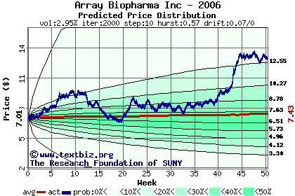 The following graph plots the year-to-date performance of the stock for 2006 compared to the probability calculated by a random walk model.