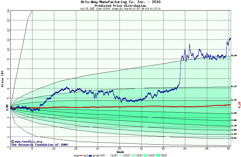 The following graph plots the year-to-date performance of the stock for 2010 compared to the probability calculated by a random walk model.