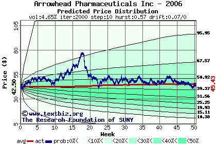 The following graph plots the year-to-date performance of the stock for 2006 compared to the probability calculated by a random walk model.