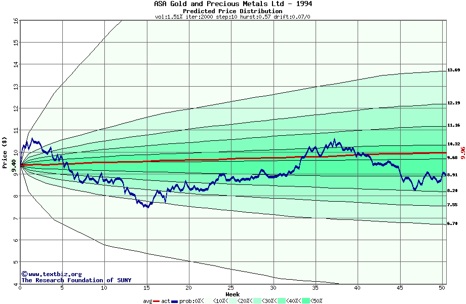 The following graph plots the year-to-date performance of the stock for 1994 compared to the probability calculated by a random walk model.