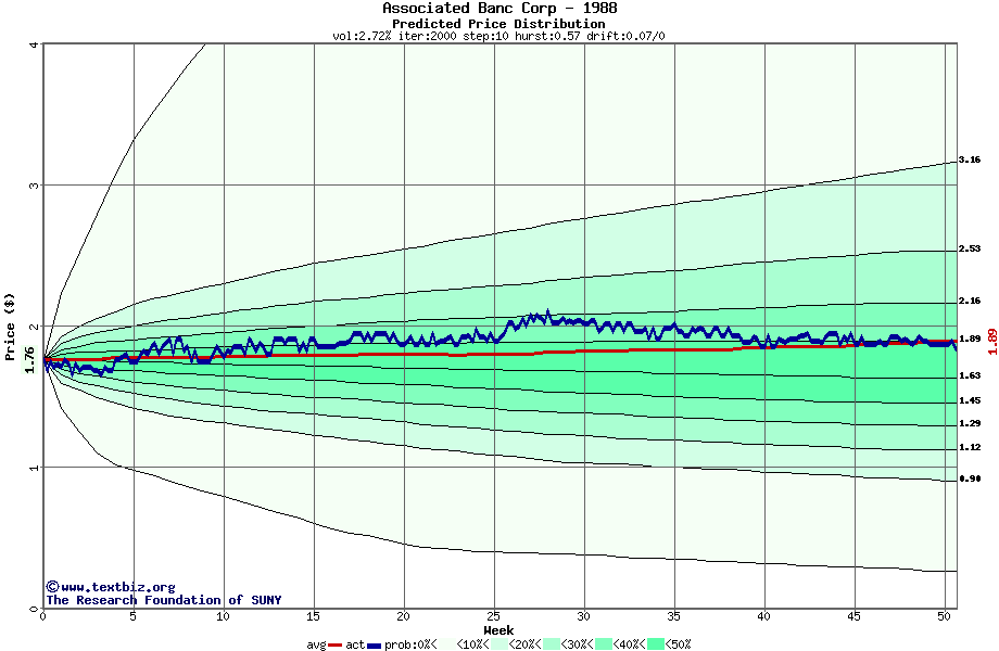 The following graph plots the year-to-date performance of the stock for 1988 compared to the probability calculated by a random walk model.