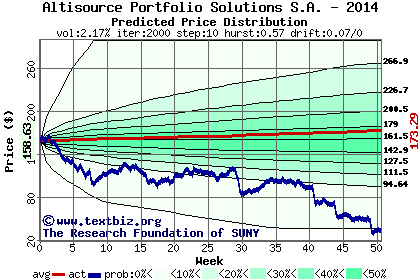 The following graph plots the year-to-date performance of the stock for 2014 compared to the probability calculated by a random walk model.