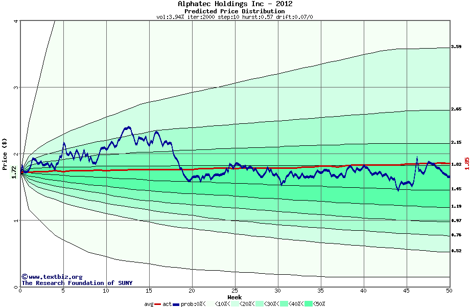 The following graph plots the year-to-date performance of the stock for 2012 compared to the probability calculated by a random walk model.