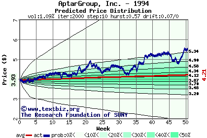 The following graph plots the year-to-date performance of the stock for 1994 compared to the probability calculated by a random walk model.