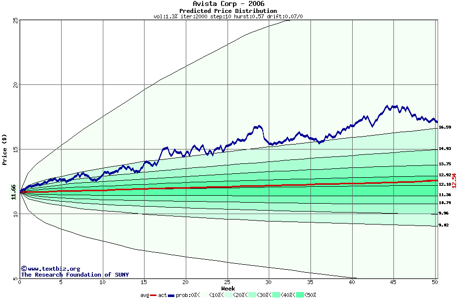The following graph plots the year-to-date performance of the stock for 2006 compared to the probability calculated by a random walk model.