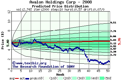 The following graph plots the year-to-date performance of the stock for 2008 compared to the probability calculated by a random walk model.