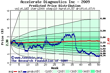 The following graph plots the year-to-date performance of the stock for 2009 compared to the probability calculated by a random walk model.