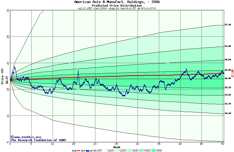 The following graph plots the year-to-date performance of the stock for 2006 compared to the probability calculated by a random walk model.