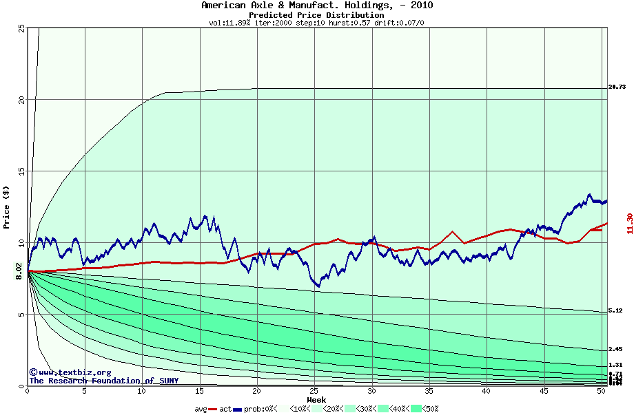 The following graph plots the year-to-date performance of the stock for 2010 compared to the probability calculated by a random walk model.