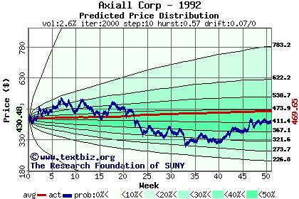 The following graph plots the year-to-date performance of the stock for 1992 compared to the probability calculated by a random walk model.