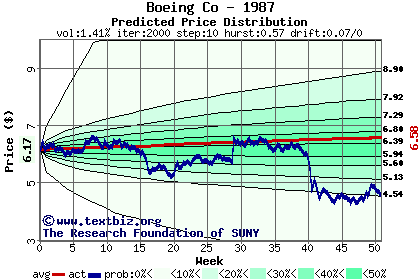 The following graph plots the year-to-date performance of the stock for 1987 compared to the probability calculated by a random walk model.