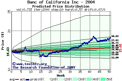 The following graph plots the year-to-date performance of the stock for 2004 compared to the probability calculated by a random walk model.