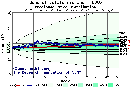 The following graph plots the year-to-date performance of the stock for 2006 compared to the probability calculated by a random walk model.