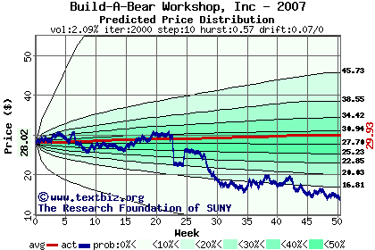 The following graph plots the year-to-date performance of the stock for 2007 compared to the probability calculated by a random walk model.