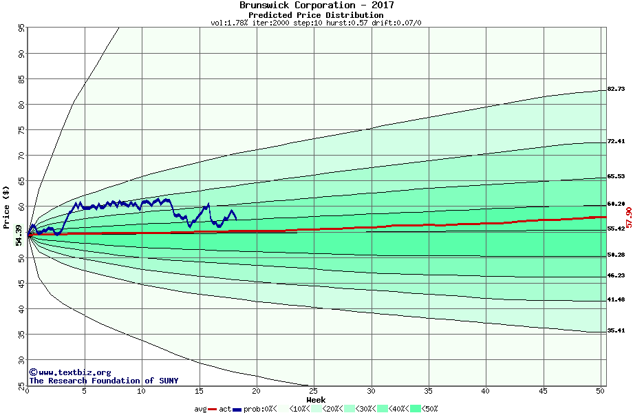 The following graph plots the year-to-date performance of the stock for 2017 compared to the probability calculated by a random walk model.