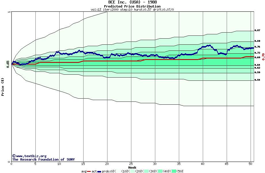 The following graph plots the year-to-date performance of the stock for 1988 compared to the probability calculated by a random walk model.