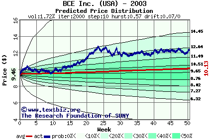 The following graph plots the year-to-date performance of the stock for 2003 compared to the probability calculated by a random walk model.