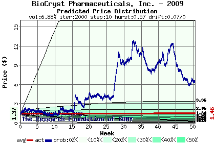 The following graph plots the year-to-date performance of the stock for 2009 compared to the probability calculated by a random walk model.
