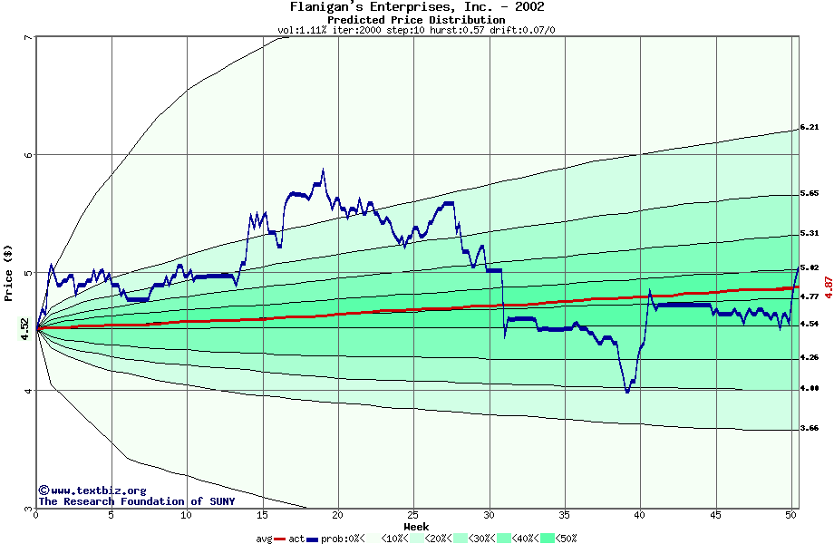 The following graph plots the year-to-date performance of the stock for 2002 compared to the probability calculated by a random walk model.