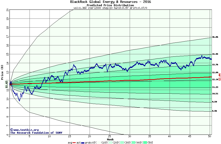 The following graph plots the year-to-date performance of the stock for 2016 compared to the probability calculated by a random walk model.