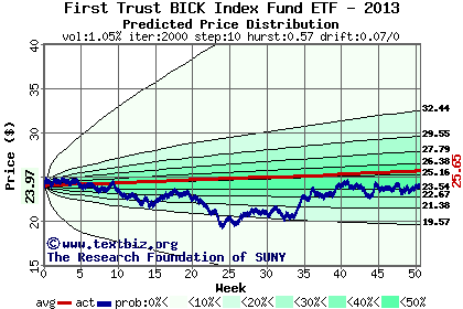The following graph plots the year-to-date performance of the stock for 2013 compared to the probability calculated by a random walk model.