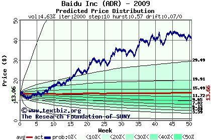 The following graph plots the year-to-date performance of the stock for 2009 compared to the probability calculated by a random walk model.