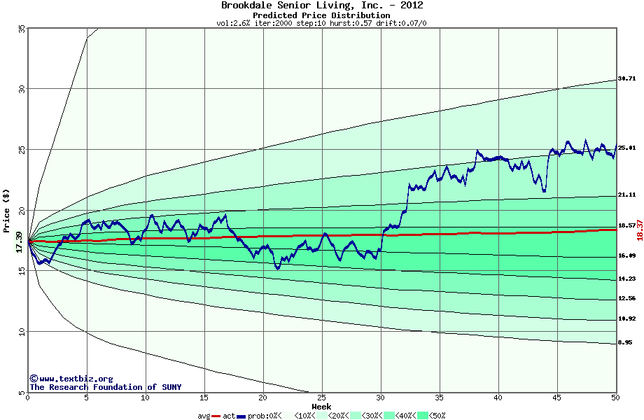 The following graph plots the year-to-date performance of the stock for 2012 compared to the probability calculated by a random walk model.