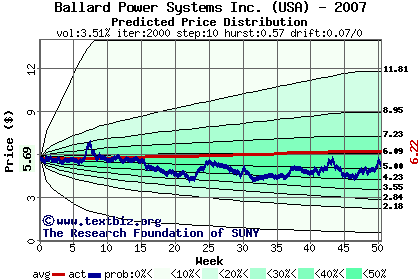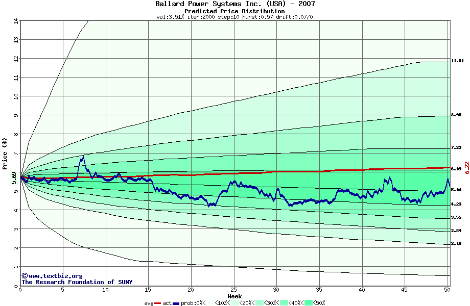 The following graph plots the year-to-date performance of the stock for 2007 compared to the probability calculated by a random walk model.