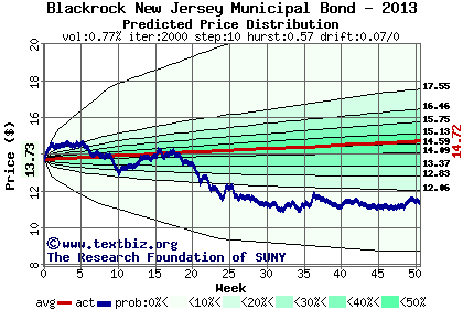 The high to date and low to date prices of the stock plotted against a random walk model for 2013 (what's this?).