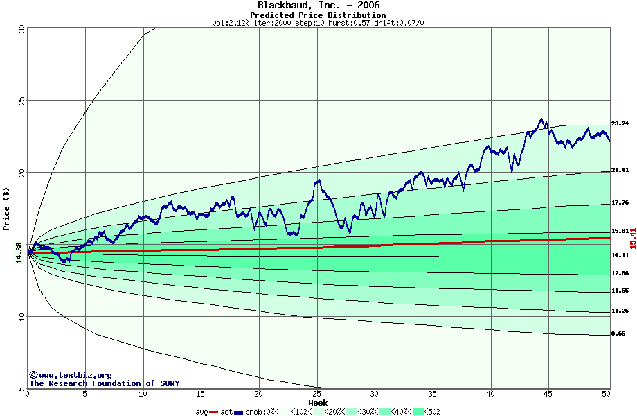 The following graph plots the year-to-date performance of the stock for 2006 compared to the probability calculated by a random walk model.