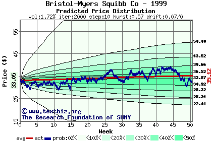 The following graph plots the year-to-date performance of the stock for 1999 compared to the probability calculated by a random walk model.