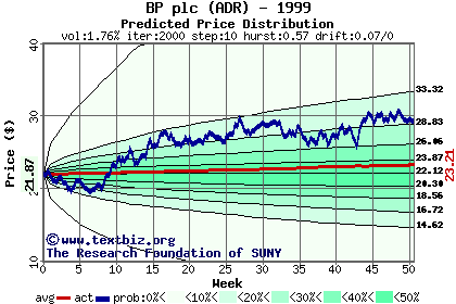 The following graph plots the year-to-date performance of the stock for 1999 compared to the probability calculated by a random walk model.