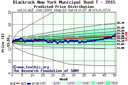 The high to date and low to date prices of the stock plotted against a random walk model for 2015 (what's this?).