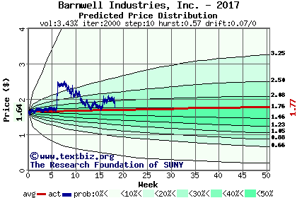The high to date and low to date prices of the stock plotted against a random walk model for 2017 (what's this?).