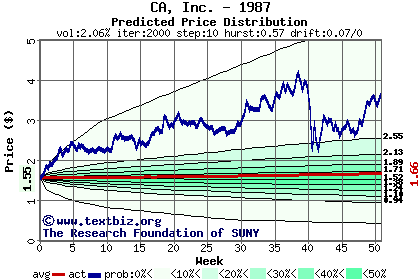 The following graph plots the year-to-date performance of the stock for 1987 compared to the probability calculated by a random walk model.