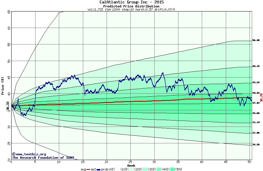 The following graph plots the year-to-date performance of the stock for 2015 compared to the probability calculated by a random walk model.