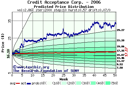 The following graph plots the year-to-date performance of the stock for 2006 compared to the probability calculated by a random walk model.