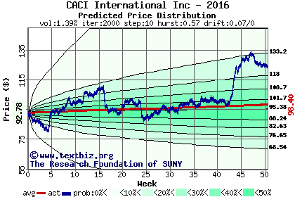 The following graph plots the year-to-date performance of the stock for 2016 compared to the probability calculated by a random walk model.